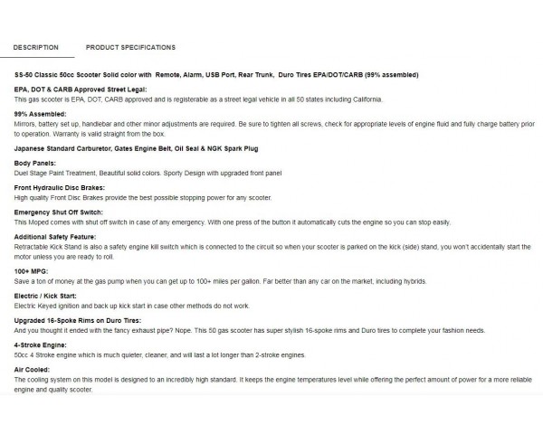 And you thought it ended with the fancy exhaust pipe? Nope. This 50 gas scooter has super stylish 16-spoke rims and Duro tires to complete your fashion needs.